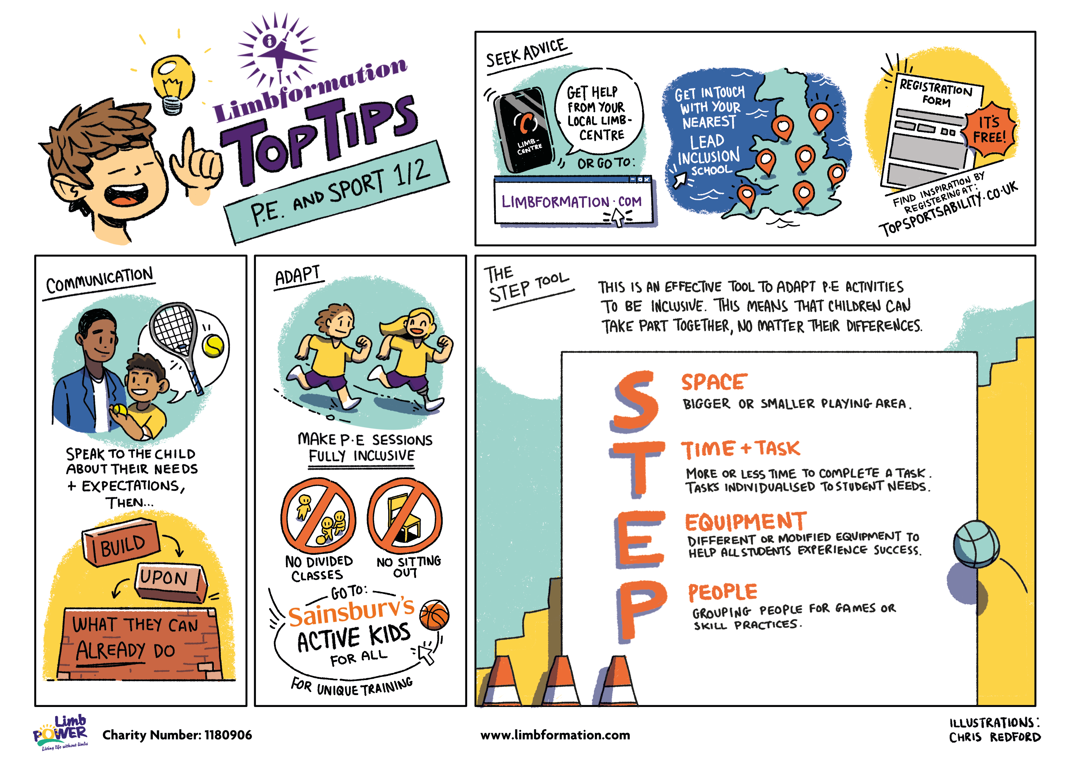 LimbPower are excited to announce a new Children’s Physical Education Infographic to join our suit of child-centric infographics to support the physical, mental and social well-being of children with limb difference. This resource was created to address the needs of limb impaired children engaging in School PE and Sport. LimbPower worked with education and healthcare professionals and parents and children to develop this fun, illustrated Top Tips Guide to navigating school P.E. in response to research and insight from parents and children.